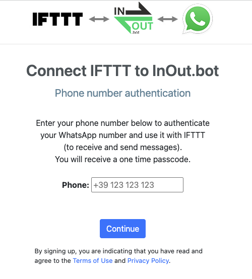 IFTTT connects to InOut.bot, not WhatsApp directly. That means the automation happens through InOut.bot’s platform.