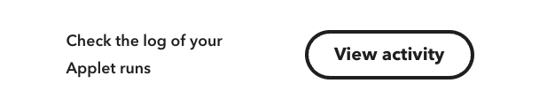 Start by checking your Applet’s activity feed. This shows a history of when the Applet tried to run and whether it was successful. You can access your Applet's activity feed by viewing your Applet, then scrolling down and press view activity: