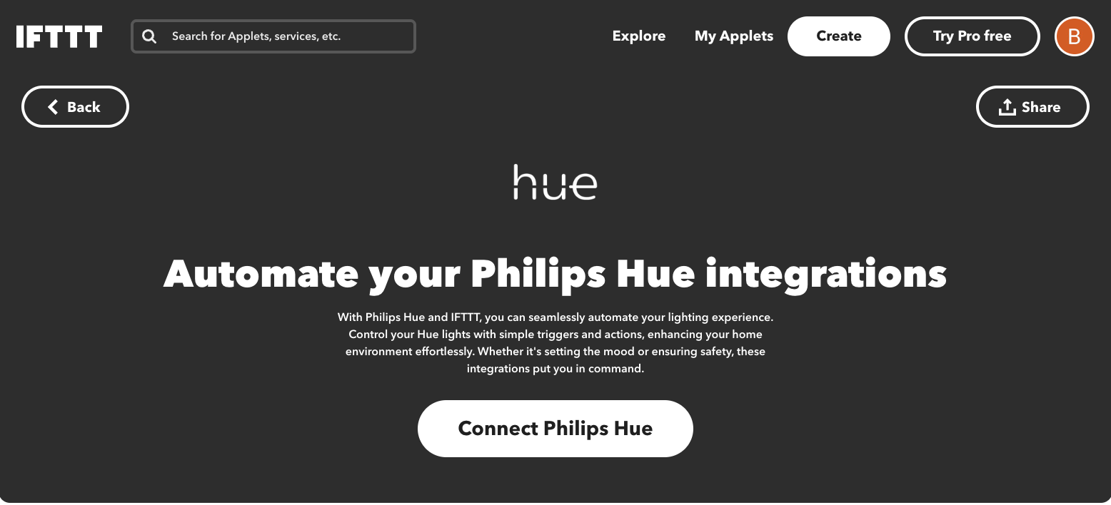Please note that the credentials entered on the following screen should be those for the service you’re connecting, not your IFTTT account. For example, if you’re connecting Philips Hue, you’ll need to enter your Hue account credentials rather than your IFTTT login details.