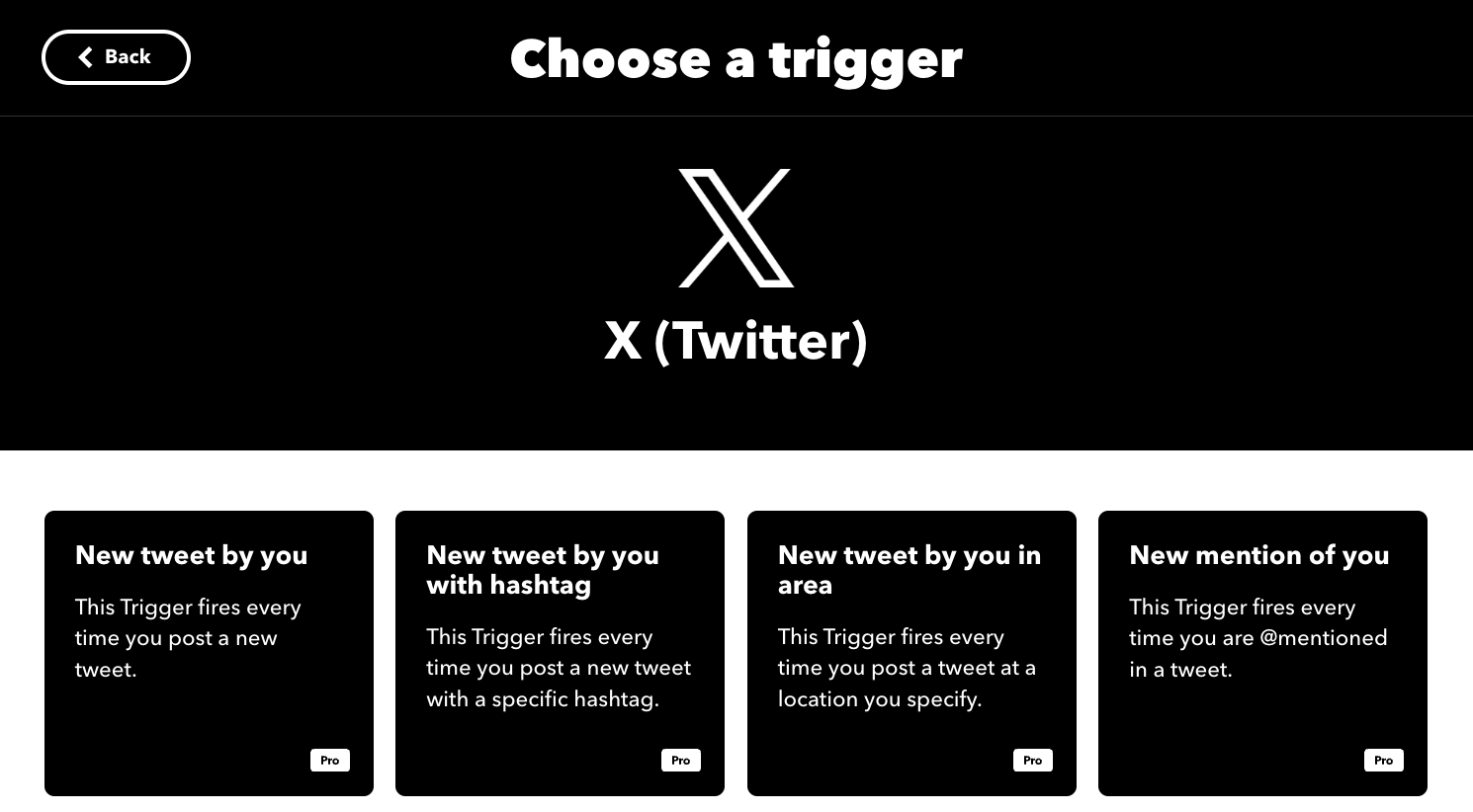 Triggers and Actions with a Pro badge require an IFTTT Pro subscription.
